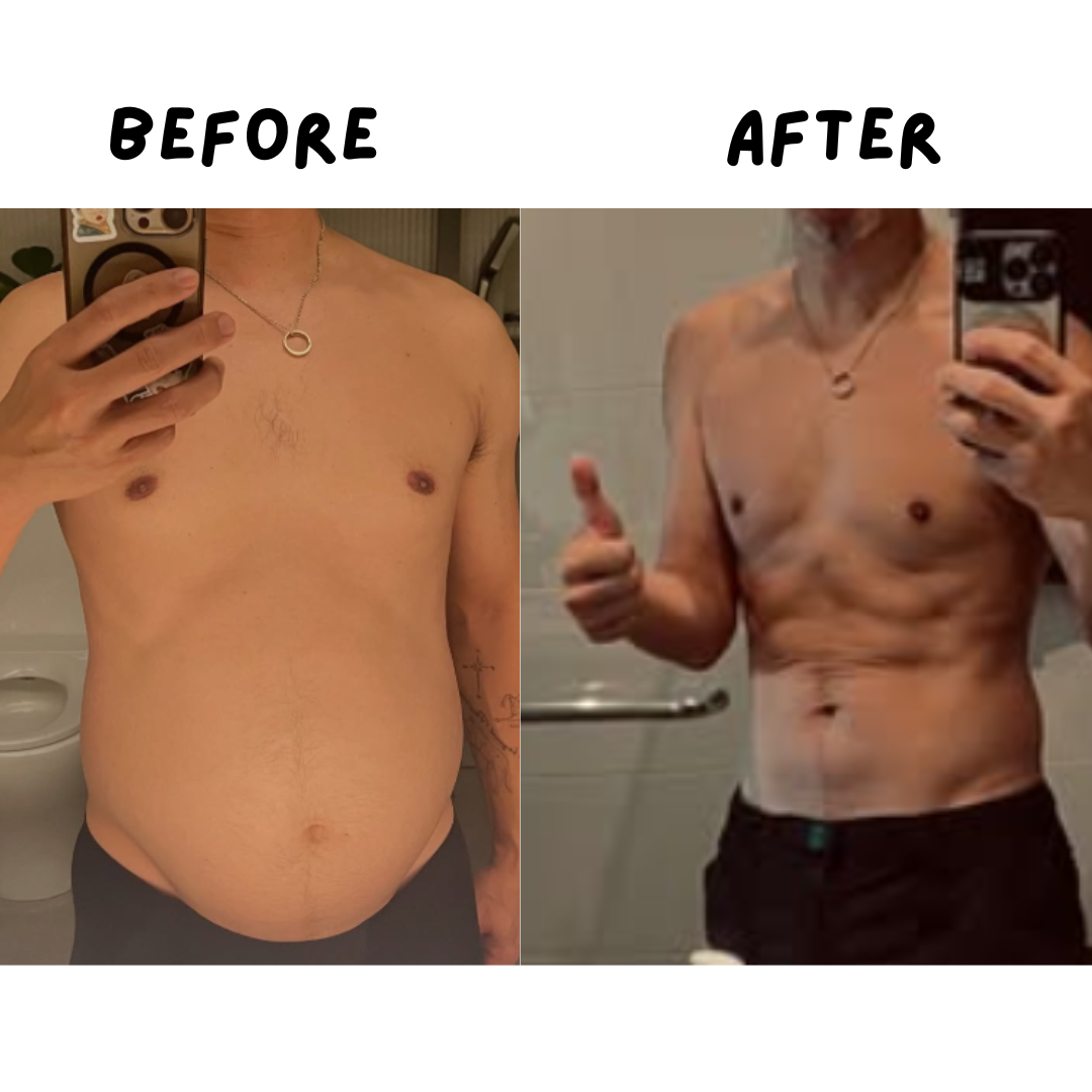 Past: No time for gym. Other diets kept him hungry or rebounded. Nothing worked.