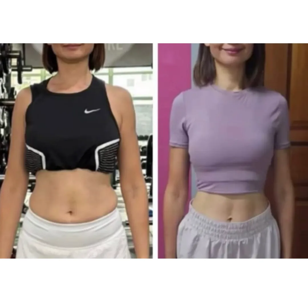 With us: Looked better in <70 days with us VS 10 months with her gym instructor
